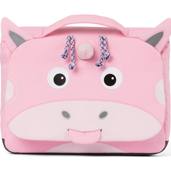 Die Schultasche Einhorn ist ein echter vielseitiger, praktischer Begleiter für Vor- und Grundschule. Ob als Umhängetasche, Rucksack oder Tasche – die Tasche lässt leicht überall hin mitnehmen. Dafür sorgen ein Tragegriff, ein höhen- und weitenverstellbarer Brustgurt, die weichen Schulterpolster und die gepolsterte Rückseite. Im Hauptfach mit 4 Litern Volumen finden Hefte, Stifte oder das Lieblingskuscheltier spielend Platz und es lässt sich dank Klettverschluss leicht öffnen und verschließen. Für Kleinigkeiten ist ein Meshfach mit Reißverschluss im Deckel vorhanden. Ein elastischer Buchhalter hält die Bücher am Platz. Bedruckte Reflektor Elemente erhöhen die Sichtbarkeit. Damit jeder gleich weiß, wessen Freund*in das Einhorn ist, versteckt sich in der Zunge ein Namenschild.Art.-Nr.: 1628467