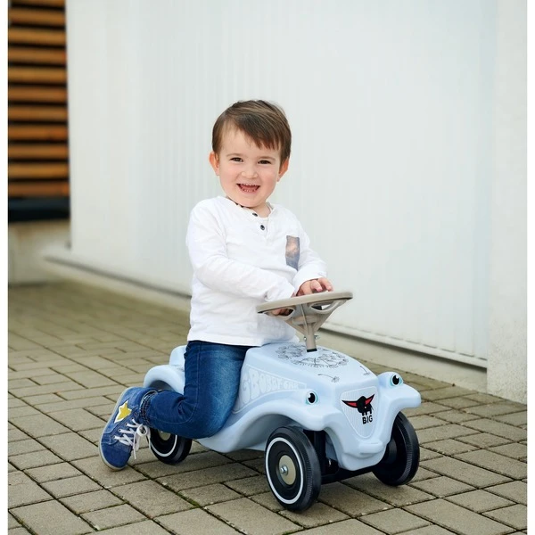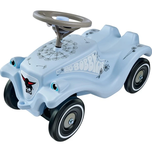 Das BIG-Bobby-Car-Classic Blowball ist ein tolles Fahrzeug für alle kleinen Fahranfänger ab 12 Monaten, die weiche Farbtöne und liebliches Design schätzen. Durch seine Karosserie in zartem hellblau in Verbindung mit Pusteblumen-Stickern verzaubert dieses Bobby-Car mit zeitloser Eleganz. Das BIG-Bobby-Car-Classic ist legendär in seiner Form und unschlagbar in Sachen Qualität. Die seit Jahrzehnten bewährte, unveränderte Karosserie des beliebten Kinderautos ist ergonomisch perfekt auf die Bedürfnisse der kleinen Fahrer und Fahrerinnen abgestimmt. Vier robuste und abriebfeste Räder sichern eine gute Straßenlage. Das griffige Sicherheitslenkrad ist mit einer mechanischen Hupe ausgestattet. Für einen kleinen Wendekreis sorgt die stufenlose Achsschenkellenkung des BIG-Bobby-Car. Je eine Anhängerkupplung vorne und hinten sowie eine Kniemulde zum Fahren für größere Kinder ergänzen die spielstarke Ausstattung. Die hervorragende Verarbeitungsqualität und der tiefliegende Schwerpunkt machen das BIG-Bobby-Car zum besonders sicheren Spielzeug. Art.-Nr.: 1788640