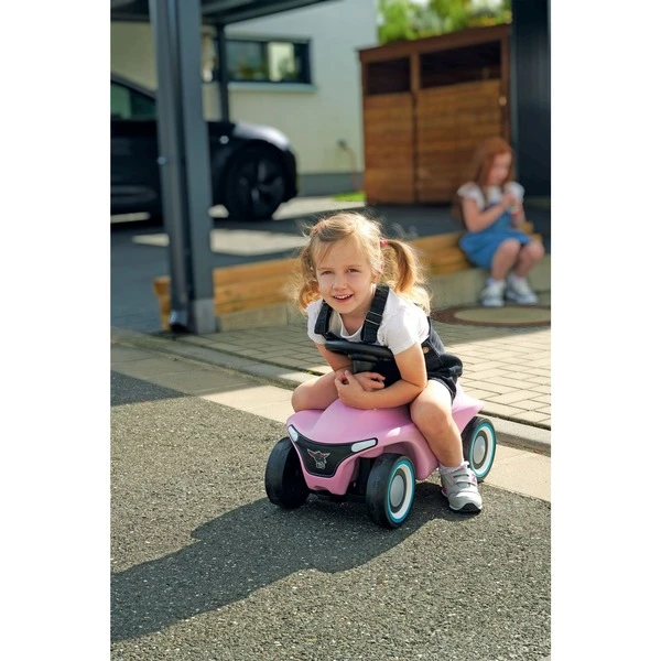 Mit dem Bobby-Car Neo präsentiert BIG das Facelift eines Klassikers. Das neue Design stellt das BIG-Logo zentral heraus, denn der bedruckte Kühlergrill wurde komplett neu gestaltet und auch die Flüsterreifen haben nun ein Büffel-Profil. Hinzu kommt die tolle Farbvariante in zartrosa mit türkisen Akzenten an Rädern und der Hupe. Das modernisierte Design bietet weiterhin eine ergonomische Sitzfläche mit Anti-Rutsch-Beschichtung und eine Sicherheits-Kniemulde. Das leichtgängige Vollschalen-Sicherheitslenkrad sorgt für einen optimalen Griff und eine angenehme Haptik. Das Bobby-Car Neo wird serienmäßig mit extra breiten, hochwertigen und abriebfesten Weichkunststoff-Reifen geliefert, die für guten Grip sorgen und flüsterleise rollen. Außerdem verfügt diese Version über 3-teilige geschlossene Felgen, die besonders leicht zu reinigen sind. Eine abnehmbare Abschleppvorrichtung vorne unter dem Kühlergrill und eine Anhängerkupplung am Heck ermöglichen das Ankoppeln von Bobby-Car-Zubehör sowie die Nutzung aller gängigen Bobby-Car-Anhänger.Art.-Nr.: 1788641
