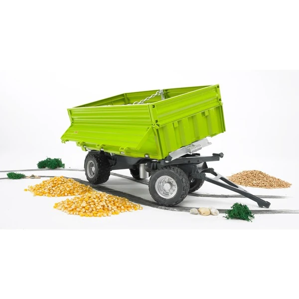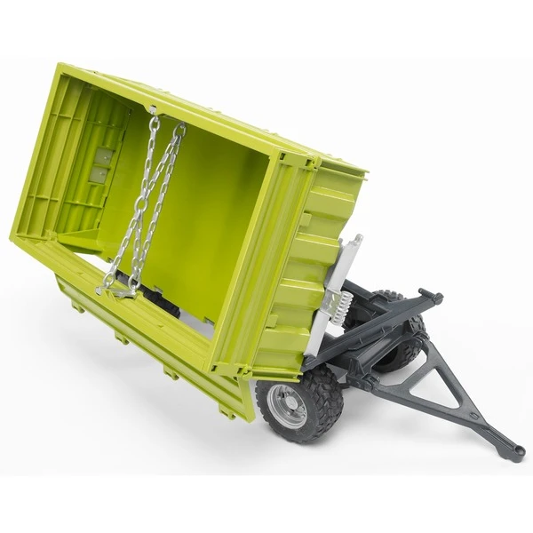 | Inhalt/Ausstattung | Fahrzeugaufbau: abnehmbare Aufsteckbordwand, Anhängerkupplung, bewegliche Deichsel, Kipper nach beiden Seiten, sowie nach hinten, durch Einstellen des Kipprichtungsgebers, kippbar; Fahrwerk: Profilreifen; Bewegung/Funktion: Auslassschieber zum Öffnen und zum Schließen | ||