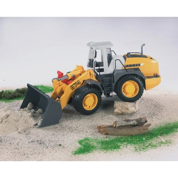 Der Liebherr Radlader L574 verfügt über eine große abkippbare Ladeschaufel, die mit einer neu entwickelten Schaufelmechanik einhändig bedient werden kann. Die Knicklenkung und die geländegängige Hinterachse bieten bequeme Manövrierbarkeit. Zudem kann die Motorhaube geöffnet werden und gibt so den Blick auf den Motorblock frei und Profilreifen runden das Bild ab.Art.-Nr.: 1233182