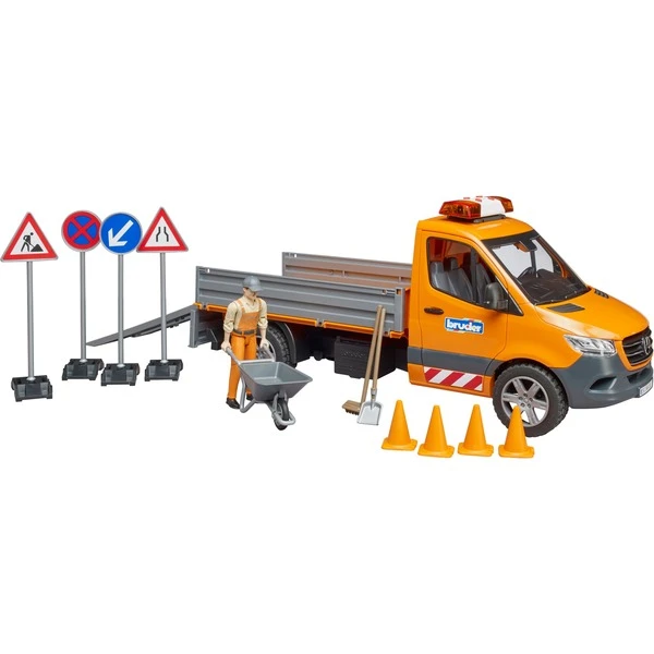 Zukunftsweisend, effizient, zuverlässig – so beschreibt Mercedes Benz den neuen Sprinter. Auch in der neuesten Generation bleibt er der vielseitige und allseits beliebte Transportprofi. Im umfangreichen Sortiment von BRUDER sind die neuesten Sprinter in unterschiedlichsten Varianten angekommen. Reparatur- und Wartungsarbeiten an Straßen, Gehwegen und Parkanlagen gibt es in jeder Stadt und Gemeinde zu sehen. Aufgrund seiner Größe und Variabilität, ist der MB Sprinter das bevorzugte Fahrzeug für diese Arbeiten bei vielen Kommunen. Dieser unverzichtbare Helfer, ist nun neu im Bruder Sortiment im bekannten Maßstab 1:16 zu finden. Das Fahrzeug besitzt eine kippbare Ladepritsche und die Bordwände lassen sich öffnen. Zum Transport kleiner Fahrzeuge, sind ansteckbare Auffahrrampen enthalten. Damit der Spielspaß gleich losgehen kann, ist der Bruder Bauarbeiter samt Schubkarre, Werkzeug, Schildern und Pylonen gleich enthalten. Für die bessere Sichtbarkeit ist der Sprinter mit einem Light & Sound Modul ausgestattet. Neben drei verschiedenen Sirenenlauten kann auch das Motorgeräusch des Fahrzeugs erzeugt werden. Somit steht der nächsten Baustelle im Kinderzimmer nichts mehr im Wege.