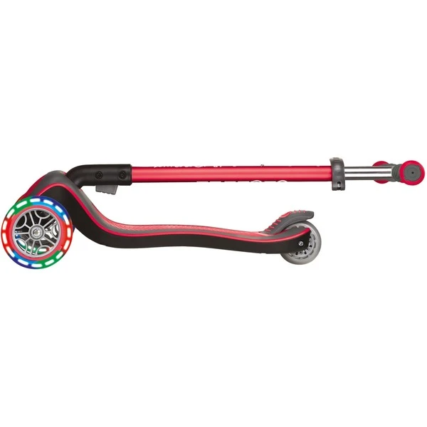 | Inhalt/Ausstattung | Zusammenklappbarer Scooter mit Leuchtrollen, Lenkeinrastung, tiefergelegtes, gummiertes 2-Layer Deck, ergonomische zweifarbige Handgriffe, höhenverstellbarer Lenker, Hi-impact double Injection Reibungsbremse mit Speichenschutz, Super High Rebound gegossene PU Rollen, 120mm und 80 mm, Kugellager ABEC 5 | ||