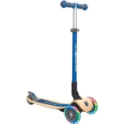 Der Primo Foldable Wood mit neuem Designkonzept bietet jede Menge Fahrspaß und ermöglicht einfaches Zusammenklappen. Der Lenker ist 3-fach höhenverstellbar zur optimalen Anpassung an das Kind. Durch die zuschaltbare Lenkeinrastung und die ergonomischen Handgriffe lässt sich einfach und sicher Fahren lernen. Ein weiteres Feature des Rollers sind die extra breiten Leuchtrollen. Das stabile Deck aus Birkenholz ist tiefer gelegt, so können leichter beide Füße aufgestellt werden. Das sorgt für optimale Kontrolle und erhöhten Komfort. Das Fahrwerk mit Kugellager ABEC 5 dient der optimalen Steuerung. Der Foldable Wood verfügt außerdem über eine besonders breite Hi-impact Reibungsbremse mit Speichenschutz sowie über super High Rebound gegossene PU Rollen in 120 mm und 80 mm.