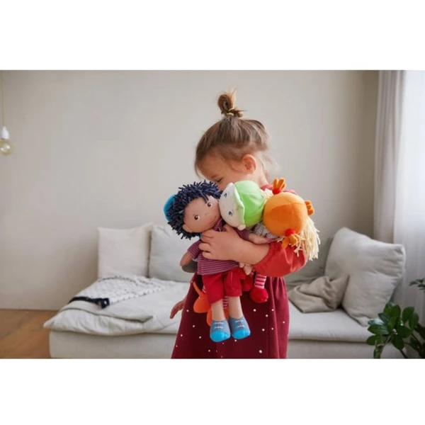 Puppen von HABA sind tolle Gefährten für Kinder. Sie haben fröhliche Gesichter, weiche, wattierte Körper und kuschelige Haare. Spielen, kuscheln, trösten oder Abenteuer erleben – mit diesen Puppen ist vieles möglich. Bei der großen Auswahl an Charakteren ist für jedes Kind der passende Spielgefährte dabei. William erforscht gerne Rätsel und Geheimnisse. Er trägt sein geringeltes Sweatshirt und eine rote Freizeithose. Praktisch: Seine Kleidung ist dank Klettverschluss ruckzuck aus- und ebenso schnell wieder angezogen.Art.-Nr.: 1913227