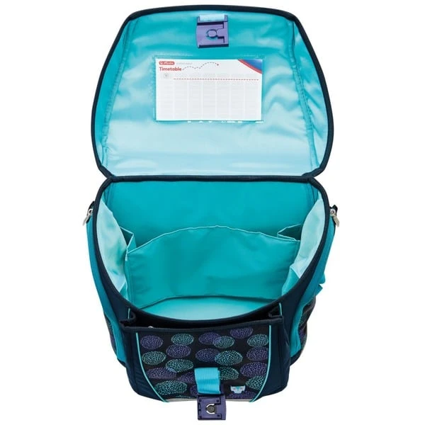 Der Herlitz FiloLight zeichnet sich durch sein geringes Eigengewicht von unter 1 kg aus. Der formstabile Korpus, ein hochwertiges Fidlock Schloss und die sportliche seitliche Taschenaufteilung machen es den Kindern einfach einen guten Überblick über die Schulmaterialien zu behalten und sich schnell zu organisieren. Durch das Rückensystem passt sich der Herlitz FiloLight immer an die sich ändernde Körpergröße des Kindes an. Der Einsatz des ergonomisch geformten Rückenpolsters, welches mit seinem atmungsaktivem Material einen optimalen Tragekomfort bietet, ein abnehmbarer Hüftgurt sowie verstellbare Schulter- und Brustgurte sorgen für eine komfortable und angenehme Passform, hohe Flexibilität und große Anpassungsmöglichkeiten. Auch in puncto Sicherheit überzeugt der Herlitz FiloLight. Das hochwertige Reflexmaterial auf Front- und Seitenbereich sowie den Schultergurten und an der Deckelklappe sorgt für ein hohes Maß an Sichtbarkeit und Sicherheit in der Dunkelheit.Art.-Nr.: 1815466