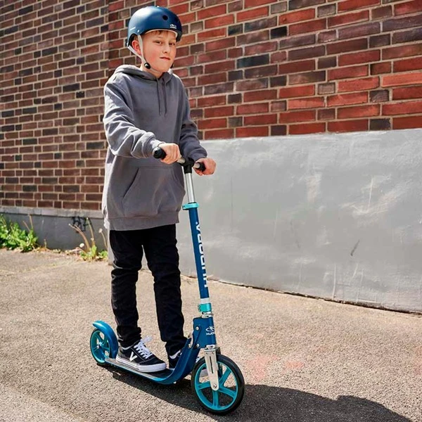 Der BigWheel 215 ist ein Aluminium-Scooter mit toller Ausstattung. Durch den einfach zu handhabenden Faltmechanismus hat er eine komfortabel große Deckfläche und kann ganz einfach transportiert werden. Das tiefe Trittbrett spart Kraft, wenn schwungvoll Gas gegeben wird. Für sicheren Halt sorgt die Reibungsbremse am Hinterrad. Der breite Lenker mit langlebigen Gummigriffen ermöglicht stabiles und vor allem ruhiges Fahrverhalten, denn lose Verbindungen wurden eliminiert, so dass keine störenden Geräusche mehr auftreten. Der Scooter läuft auf PU-Rollen mit einem Durchmesser von 215 mm. Die ABEC 5-Kugellager stehen für müheloses Fahren.Art.-Nr.: 1902699