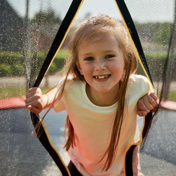 Bei diesem Gartentrampolin ist der Name Programm, denn es besticht durch ein fantastisches Design. Geschmackvoll und dezent schafft es das perfekte Ambiente für stilsicheren Sprungspaß, ohne an Funktionalität einzubüßen. Die Konstruktion des Fangzauns erhöht mit dem großen Abstand zu den Stangen die Sicherheit und dank mittig liegendem Netz ist die Sprungfläche sehr geräumig. Die unempfindliche Sprungmatte aus hochwertigem Gewebe wurde mit 48 Federn fixiert und ermöglicht eine sehr gute Sprungbeschleunigung. Die extra breite und dicke Randabdeckung aus Tarpaulin ist reißfest und nylonverstärkt. Die standfesten Doppelfüße sorgen für einen stets sicheren Stand. Das Trampolin bietet eine maximale Belastbarkeit von 100 kg auf einer Sprungfläche mit einem Durchmesser von 250 Zentimetern.