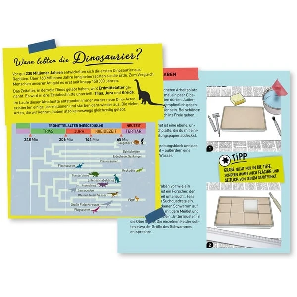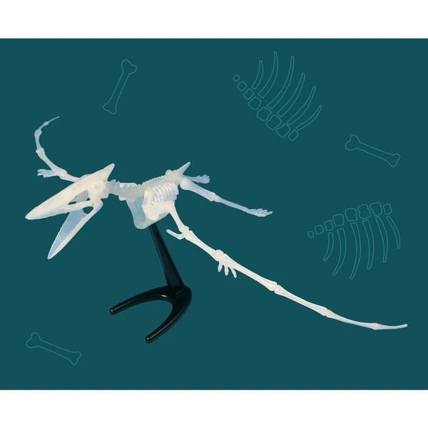 Urzeit-Forscher aufgepasst! In dem KOSMOS Experimentierset steckt das Skelett eines Flugsauriers und wartet darauf, ausgegraben zu werden! Mit dem passenden Werkzeug aus Hammer und Meißel legen Kinder zwischen 7 und 9 Jahren die Knochen vorsichtig frei – fast wie echte PaläontologInnen. Alle Knochen gefunden? Jetzt wird der Dinosaurier zusammengesetzt. Und er hat einen spannenden Trick auf Lager: Seine Knochen leuchten im Dunkeln! Mit der Flügel-Spannweite von 45 cm sieht er nicht nur bei Nacht beeindruckend aus. Auf dem mitgelieferten Podest kommt das Skelett besonders gut zur Geltung und ist eine tolle Deko für das Kinderzimmer!Art.-Nr.: 1877993