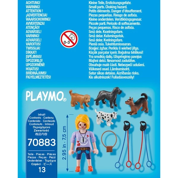 Die Hundesitterin hat einfach ein Händchen für Hunde. Jeden Tag führt sie die geliebten Pelzfreunde zum Gassigehen aus. Es macht einfach Spaß, mit den Vierbeinern an der frischen Luft zu toben und zu spielen. PLAYMOBIL Special Plus bietet das Plus an Spielspaß. Kleine Sets mit Figur und Accessoires ideal als Mitbringsel zum Sammeln, Tauschen oder Verschenken. Art.-Nr.: 1835493