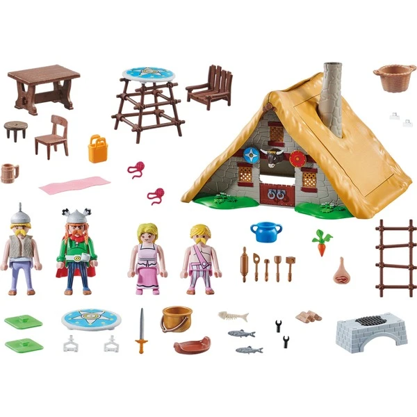 | Inhalt/Ausstattung | Majestix, Gutemine, 2 Gallier, 2 Fische, Majestix Hütte, 1 Häuptlingssitz, 1 Leiter, 1 Tisch, 1 Stuhl, 1 Schemel, 1 Kochstelle, 1 Suppentopf, 1 Kochwerkzeug, 1 Topf, 1 Besen, 1 Holzscheit, 1 Humpen, 1 Korb, 1 Stoffdecke, 1 Tasche, 1 Wurzel, 1 Tablett, 1 Schinken, 1 Fischgräte, 2 Wolle, 2 Standplatten, 2 Trageschilde, 2 Manschetten, 1 Schwert, 1 Gürtel, 1 Gürtelöse, 1 Helm mit Flügeln, 1 Gallier-Helm, 1 Umhang, 2 Griffe, 2 Fußklemmungen | ||