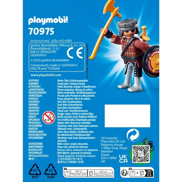 Mit den PLAYMOBIL-Figuren aus der Serie PLAYMO-Friends wird es nie langweilig! Der Barbar ist ein wirklich wilder Geselle: Er ist mit einem Gürtel, einer Streitaxt, Helm und einem Schwert ausgerüstet. Das Schwert kann am Gürtel befestigt werden. Art.-Nr.: 1888943
