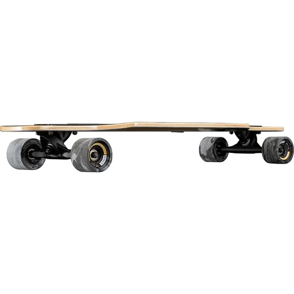 | Inhalt/Ausstattung | Deck aus 7-lagigem kanadischem Ahorn (86,4 x 22,2 cm), 7″ UB-Achsen aus strapazierfähigem Aluminium mit PU-Lenkgummis (SHR 90A), 70 x 51 mm Polyurethane-Rollen (78A) mit Marmor-Effekt und angeschliffener Lauffläche, ABEC-9 Kugellager aus Chromstahl, Griptape mit Ausschnitt, bedruckt (80S) | ||