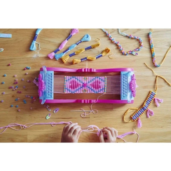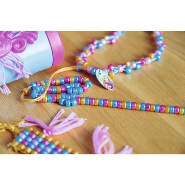 Mit diesem Bastelset für Kinder erwacht die romantische Welt der Disney-Prinzessinnen mit Schmuck zum Leben. Mit dem kindgerechten Webrahmen, über 1200 Perlen und 48 Metern Stickgarn lassen sich viele Schmuckstücke realisieren. Das einfache Webprinzip und die ausführliche Anleitung helfen beim Einstieg – so können sich schon Kinder ab 5 Jahren als Schmuck-Designer betätigen und für Freunde oder Familienmitglieder kleine Geschenke herstellen. Dabei trainieren sie Feinmotorik, Konzentration und Geschicklichkeit. Art.-Nr.: 100019883